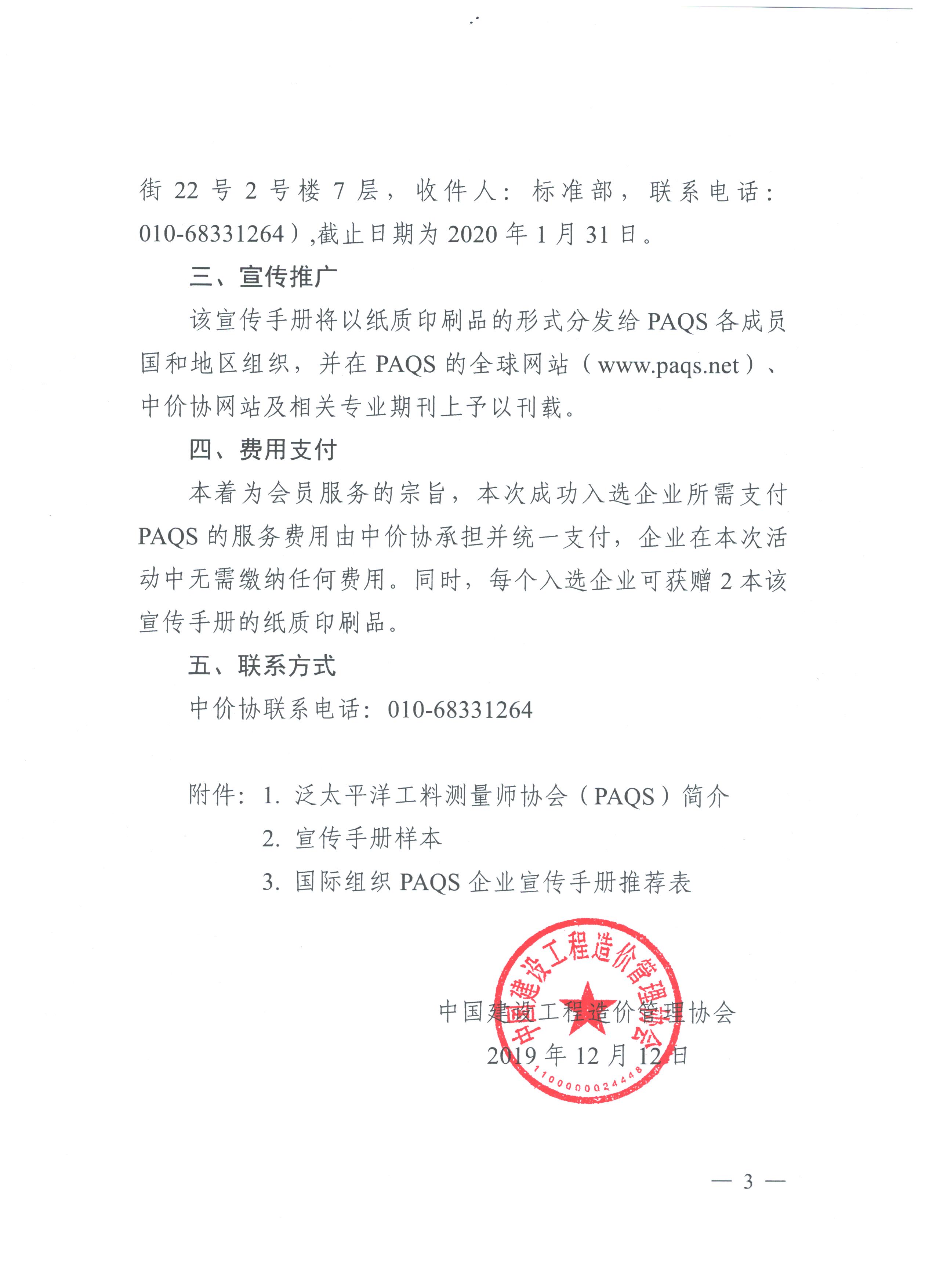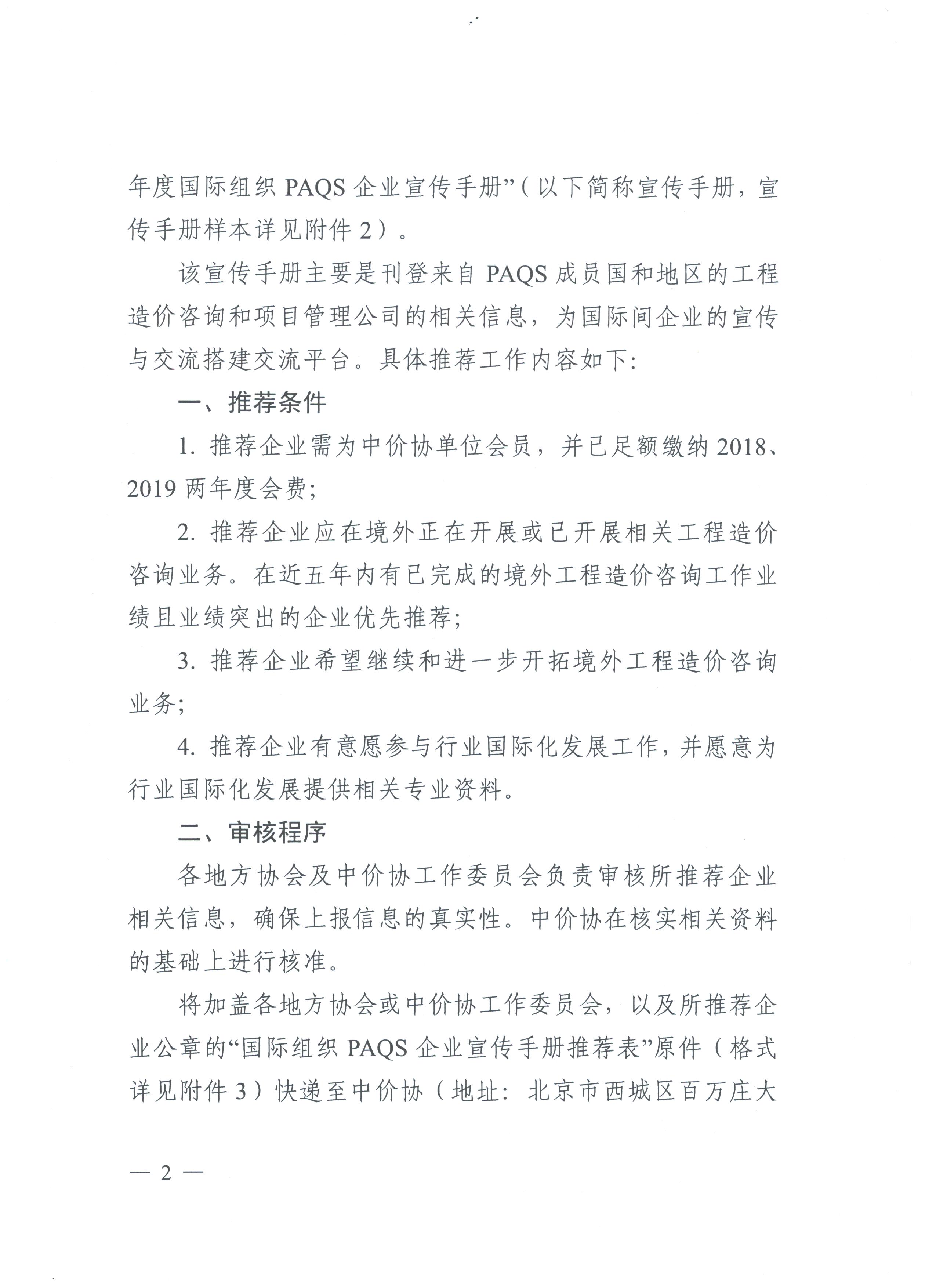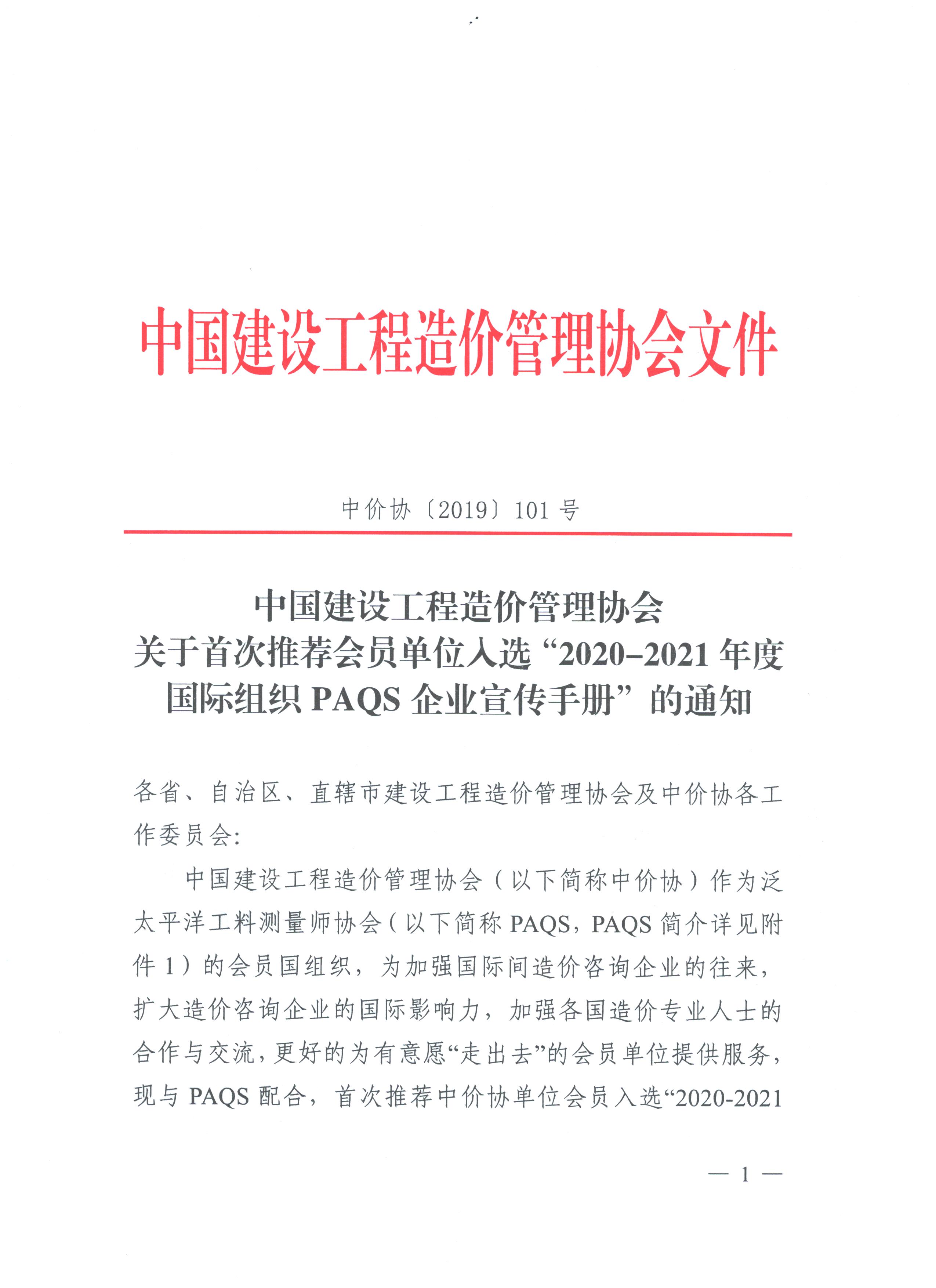 中國建設(shè)工程造價(jià)管理協(xié)會(huì)關(guān)于首次推薦會(huì)員單位入選“2020-2021年度 國際組織PAQS企業(yè)宣傳手冊(cè)”的通知